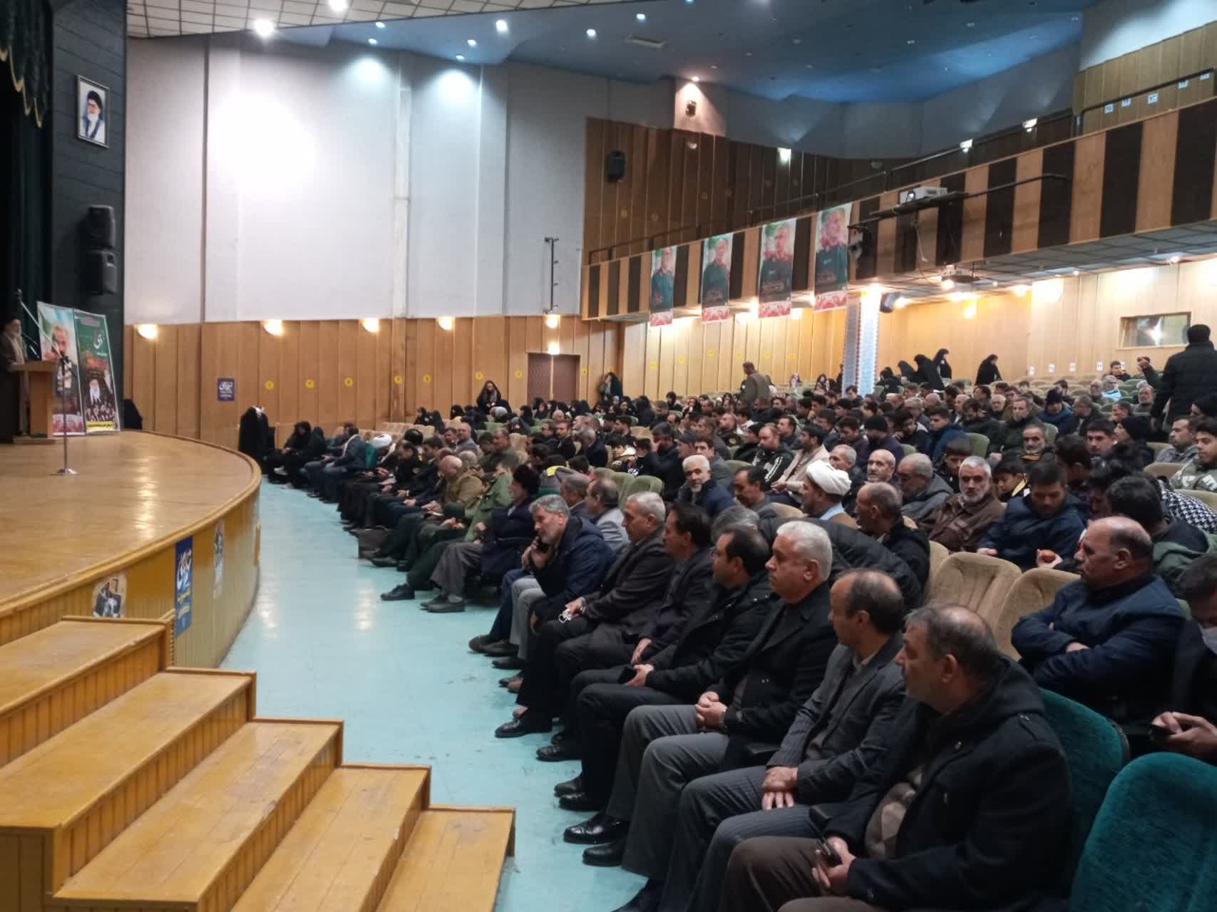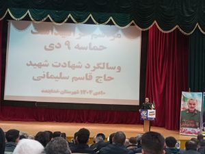 به گزارش نسیم اشراق، مراسم بزرگداشت حماسه ماندگار ۹دی و گرامیداشت ششمین سالگرد شهادت شهید سردار دلها حاج قاسم سلیمانی با سخنرانی سردار بیات از فرماندهان دفاع مقدس و جبهه مقاومت و عضو هیات علمی دانشگاه امام حسین(ع) و حجتالاسلام علی موسوی امام جمعه شهرستان خدابنده در فرهنگسرای اشراق شهر حضرت قیدار نبی (ع) برگزار شد.